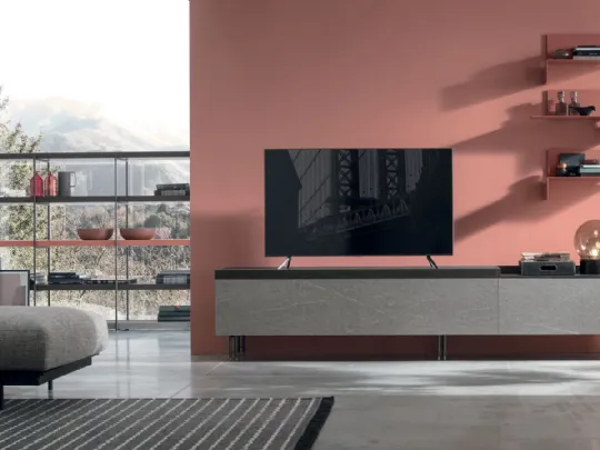 Vuoi progettare un soggiorno dinamico e operativo? Ecco a te la parete attrezzata Atlante UNIT AT121 Tomasella dalle forme decise moderne.