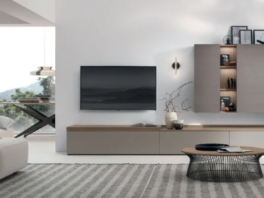 Vuoi arredare un soggiorno dinamico e operativo? Ecco a te la parete attrezzata Atlante UNIT AT115 Tomasella dalle linee decise moderne.